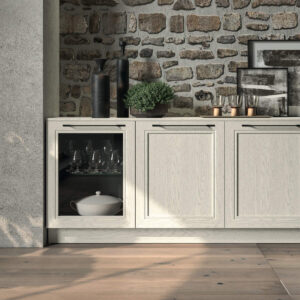 L’anta a telaio in legno massello di frassino, dallo spessore di 24 mm, è l’elemento garanzia di pregio e robustezza, con l’elegante laccatura a poro aperto che permette di apprezzare appieno la bellezza del materiale naturale.