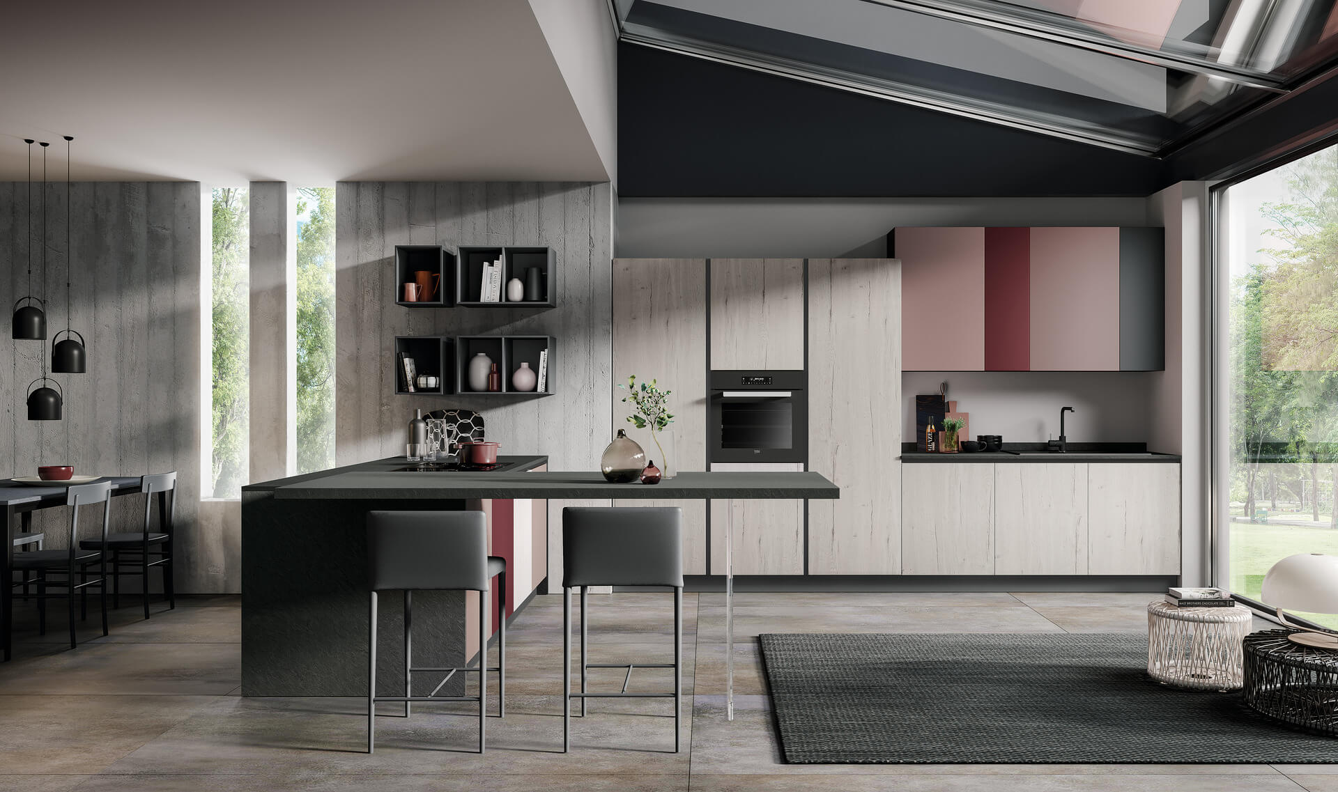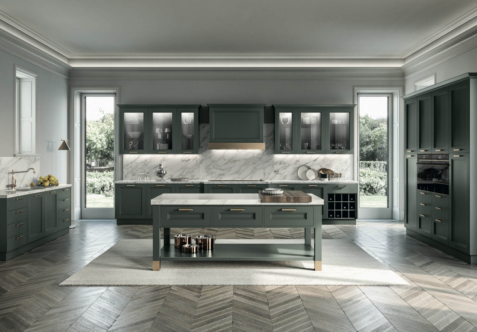 La finitura laccata opaca delle ante è il tocco di stile che stai cercando per l'ambiente più importante della casa